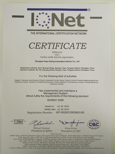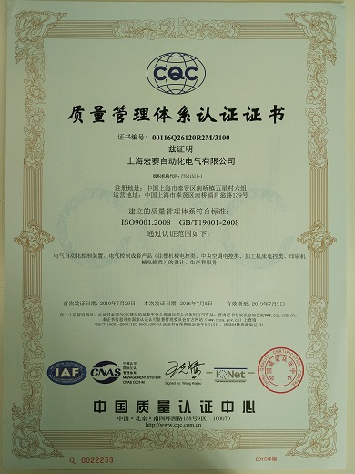 公司于2009年通過ISO9001:2000質(zhì)量管理體系認(rèn)證,證書編號(hào):00107Q12352R0M / 3100。